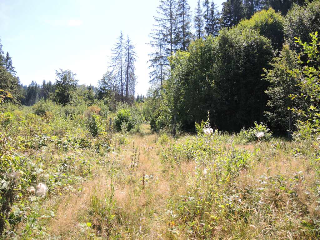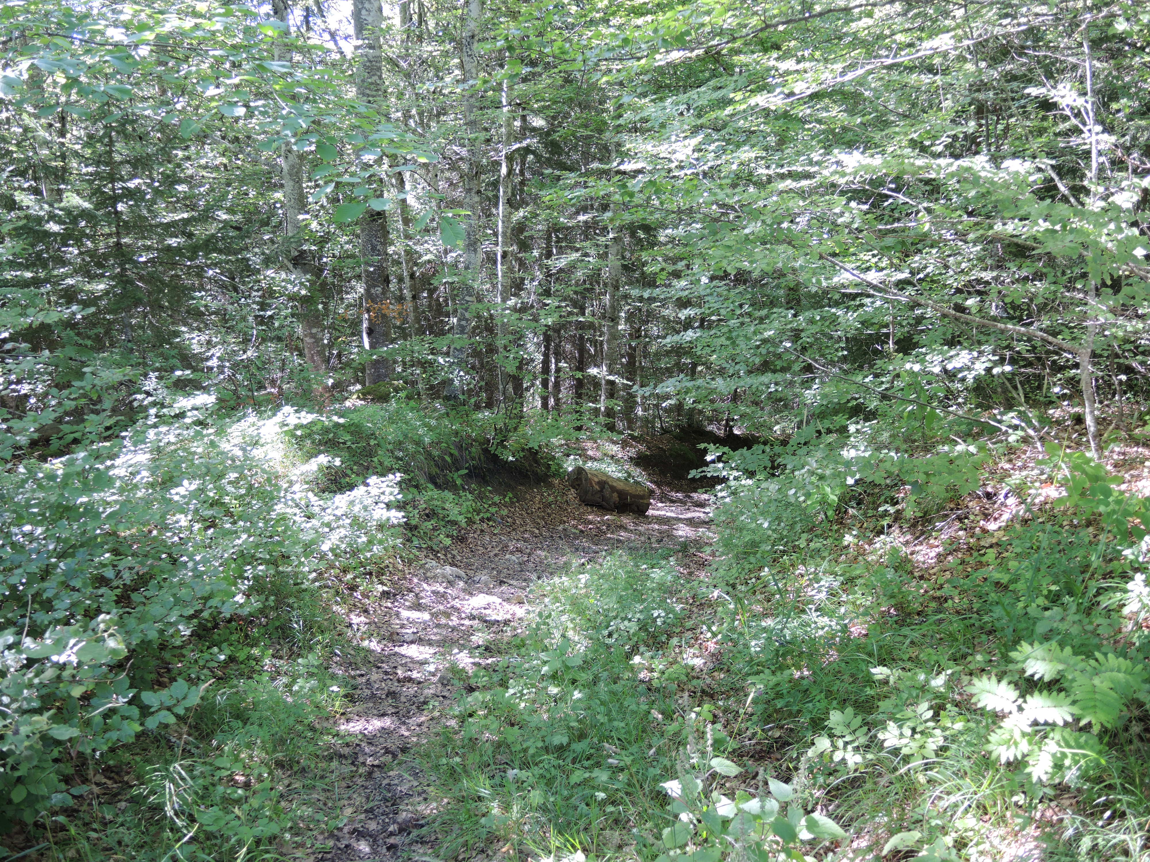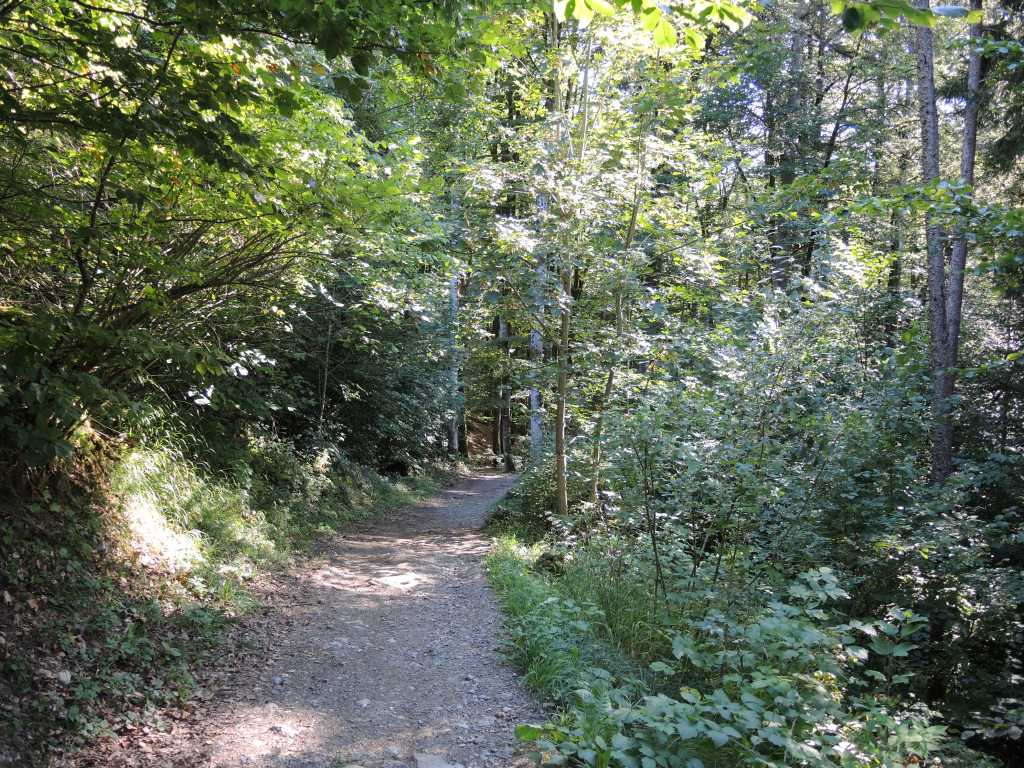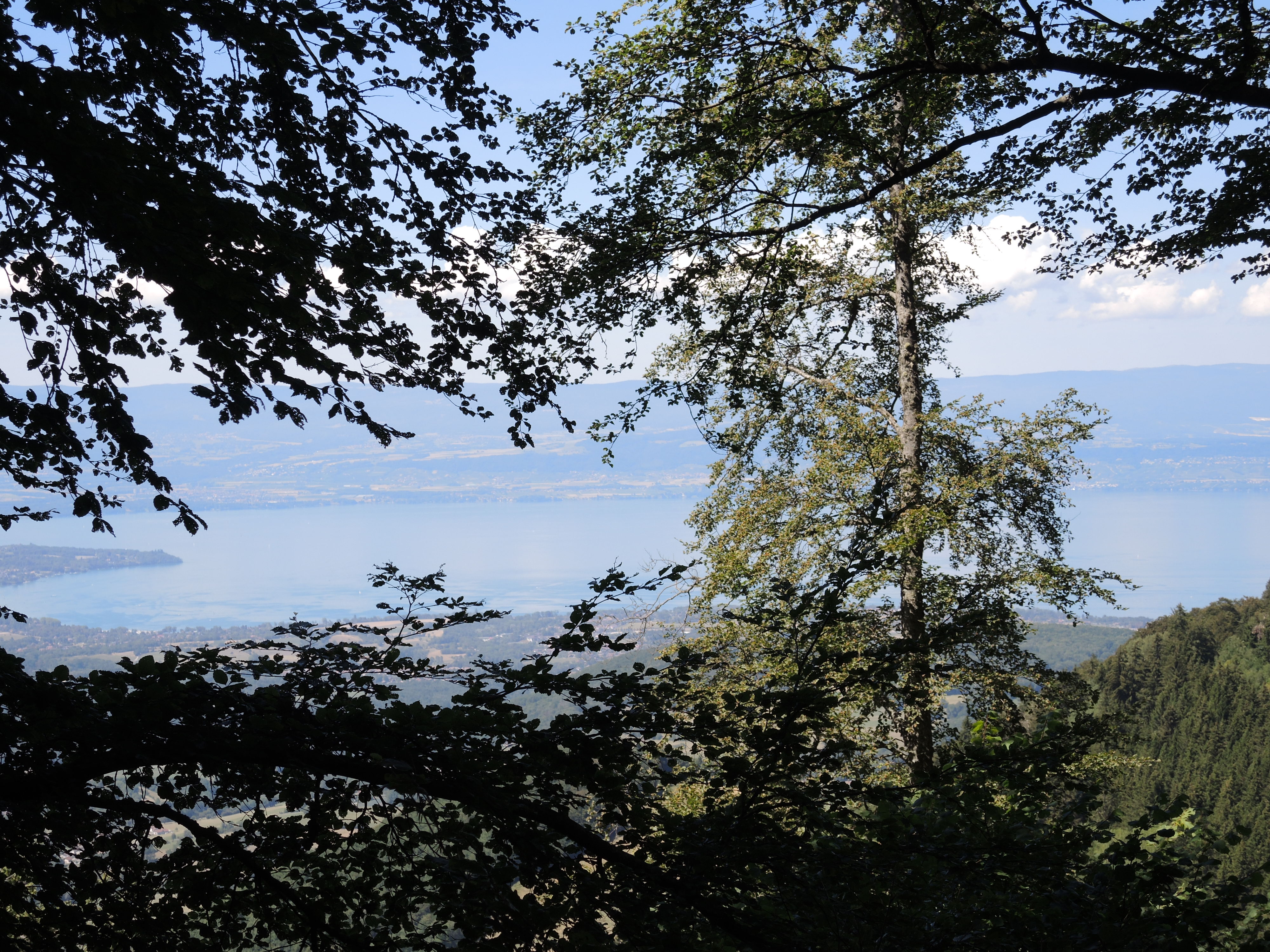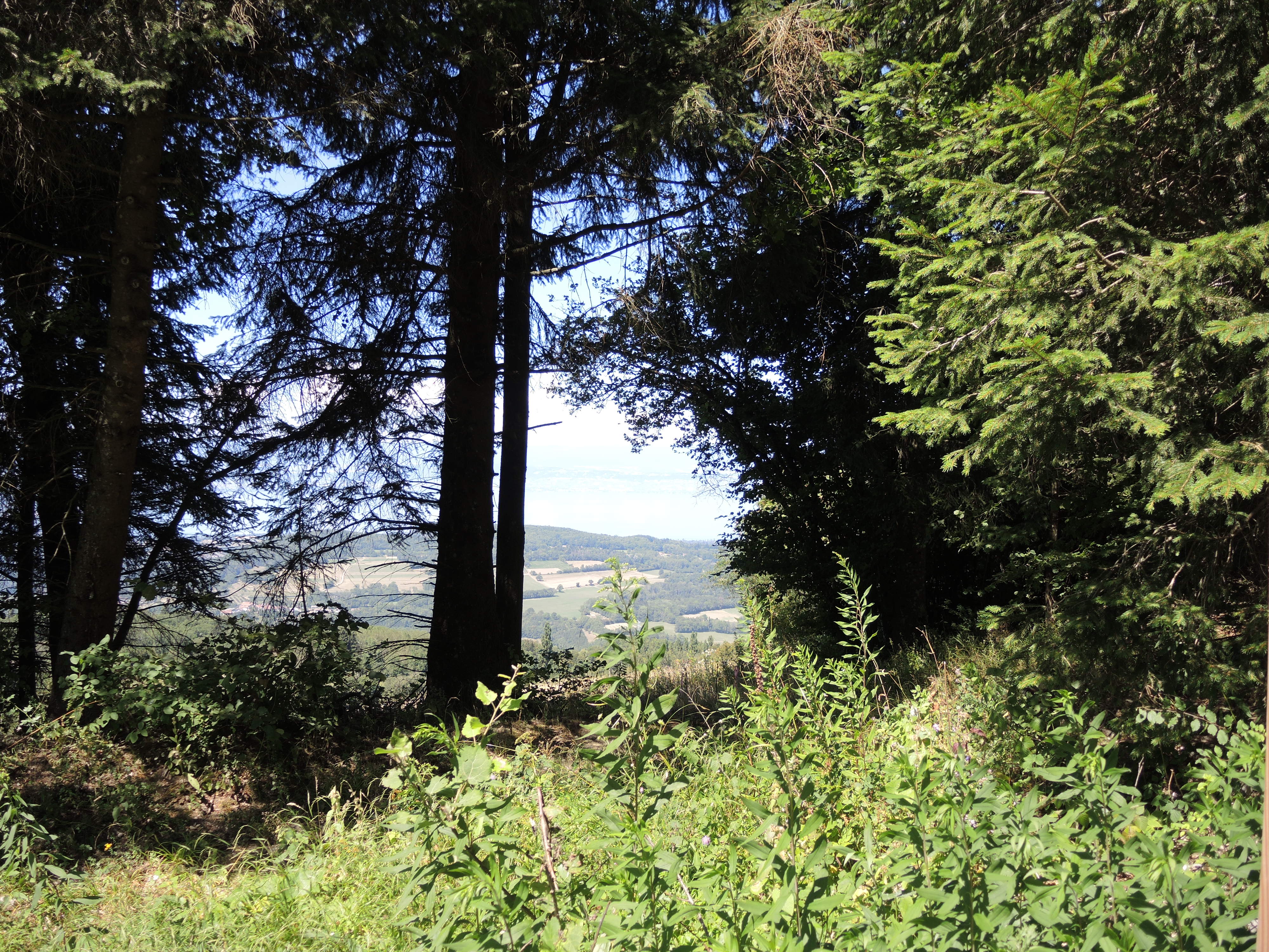 La route s’élève, dominant de plus en plus le Léman. Là bas, au loin, le Jura. Je traverse le Redon, Draillant, longe la D12 puis la D246 qui monte au col des Moises. Dès que possible, je quitte le goudron pour les sentiers. Je ne croise personne, strictement personne. Mais étrangement, par deux fois aujourd’hui, quelqu’un se trouvera sur ma route précisément quand un doute survient quant à l’itinéraire. Géographe plus que chauvine, j’affirme que la France a largement les meilleures cartes du monde. Pourtant, régulièrement, la carte diffère du terrain. Certains chemins apparaissent ou disparaissent, selon je ne sais quel critère. J’ai l’habitude. Mais comme je déteste les kilomètres supplémentaires (oui, oui !), je développe ce 6ème sens : le flaire, le pif, cette intuition du terrain, comme ici, à travers le taillis, pour trouver la piste aussi incertaine sur la carte que sur le terrain :