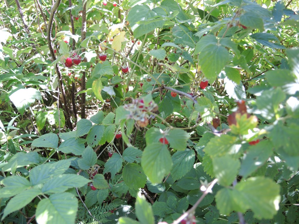 La tête dans le guidon, je lui réponds que je n’en ai la moindre idée. Mais elle m’a fait sortir de mes rêveries et je découvre à l’instant un tapis de myrtilles à nos pieds. Levant le nez, je vois des milliers de framboises. Elle va remplir son charriot et moi, mon ventre. Je n’avais jamais vu telle abondance de framboises en montagne. Qu’il est bon, ce saint François, d’offrir sur son sommet une telle profusion ! Cela tombe bien : j’avais faim et soif.