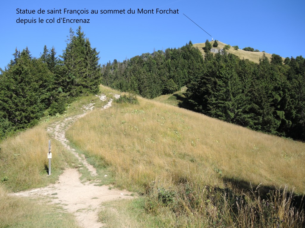 Le Mont Forchat est un petit sommet (1539 m) qui domine la Vallée Verte, dans le Chablais. Cette vallée, où sont blotties Habère-Poche, Habère-Lullin, Boëge (et son monastère de Béthléem) descend au sud vers la large vallée de l’Arve. Au sommet du Forchat, se trouve une statue de saint François et il s’y déroule chaque dernier dimanche de juillet un pèlerinage. Étape donc indispensable sur ma route. Pour l’heure je m’éloigne des châteaux visités ce matin :