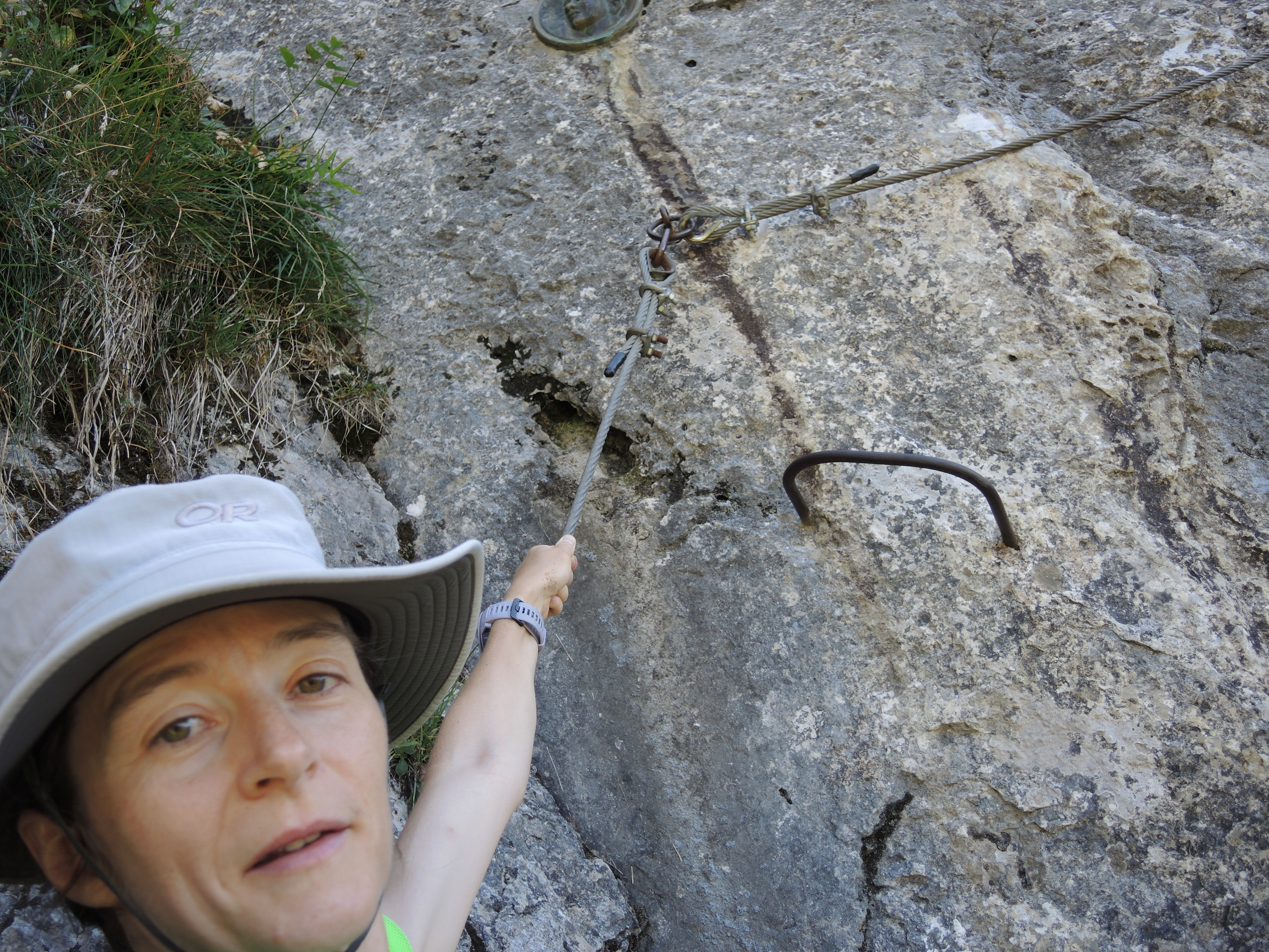 Le col du câble s’atteint par une minuscule via ferrata de quelques mètres.