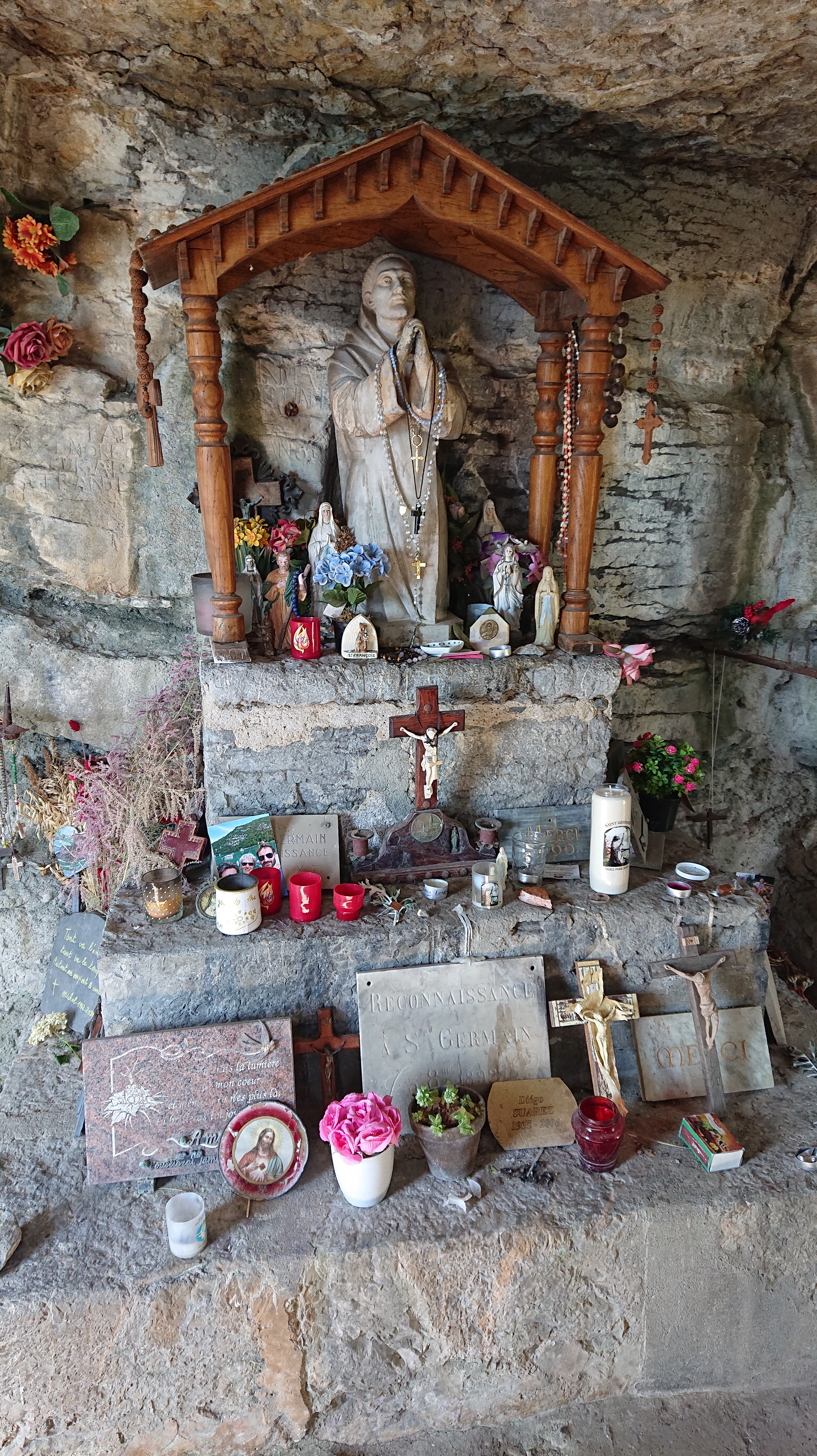 L’ermitage saint Germain est perché au-dessus du Lac d’Annecy, à Talloires. Germain était originaire de Flandres. Il fit ses études de théologie à Paris, puis rentra à l’abbaye de Savigny. Son père Abbé l’envoya avec son frère saint Ruph et deux autres compagnons fonder l’abbaye de Talloires, vers 1020. On dit qu’il fut le précepteur de saint Bernard de Menthon. Il passa la fin de sa vie, comme ermite dans une grotte, juste en contre bas de l’actuelle chapelle. Cet ermitage devint un lieu de pèlerinage dès le XIIème siècle.
