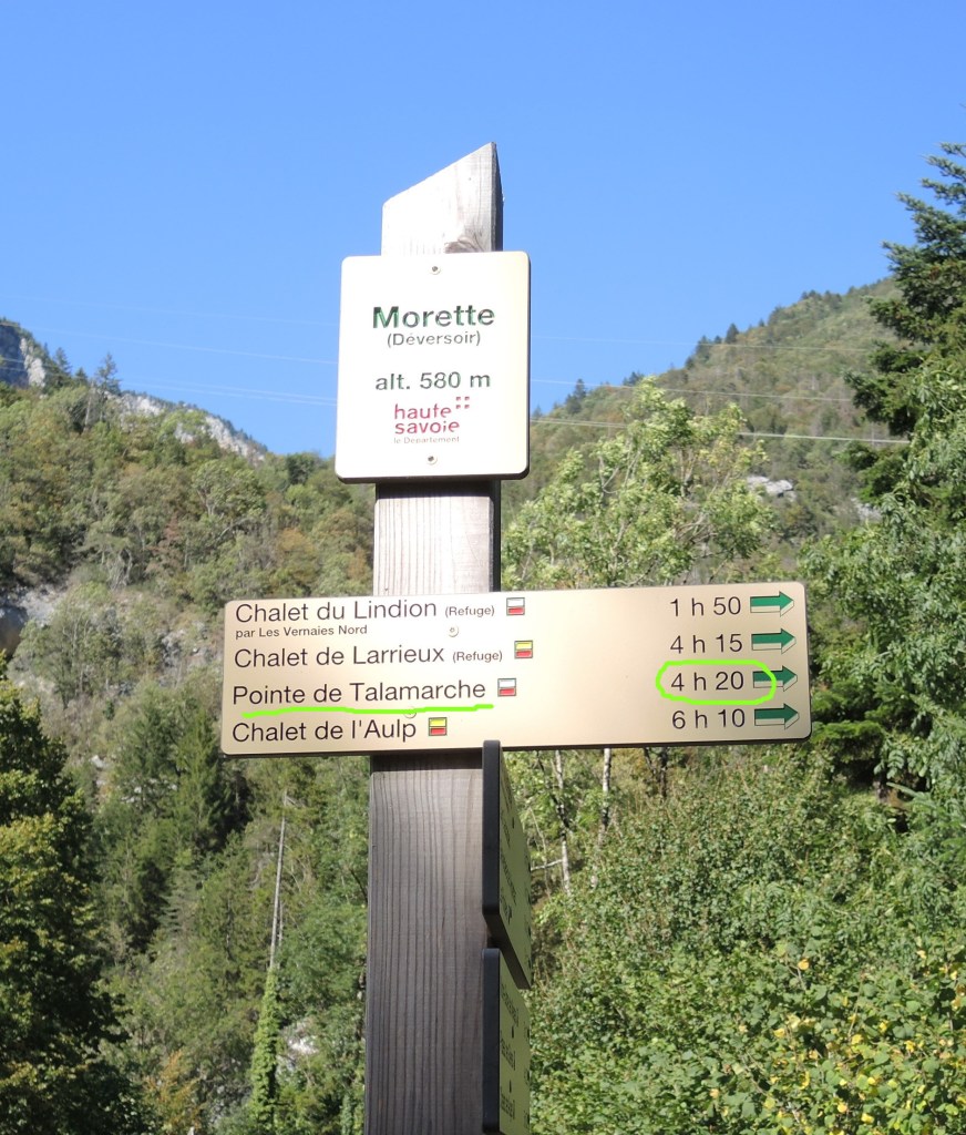 À La Balme de Thuy, le panneau me promet, rien que pour monter à Talamarche, un temps un peu délirant :