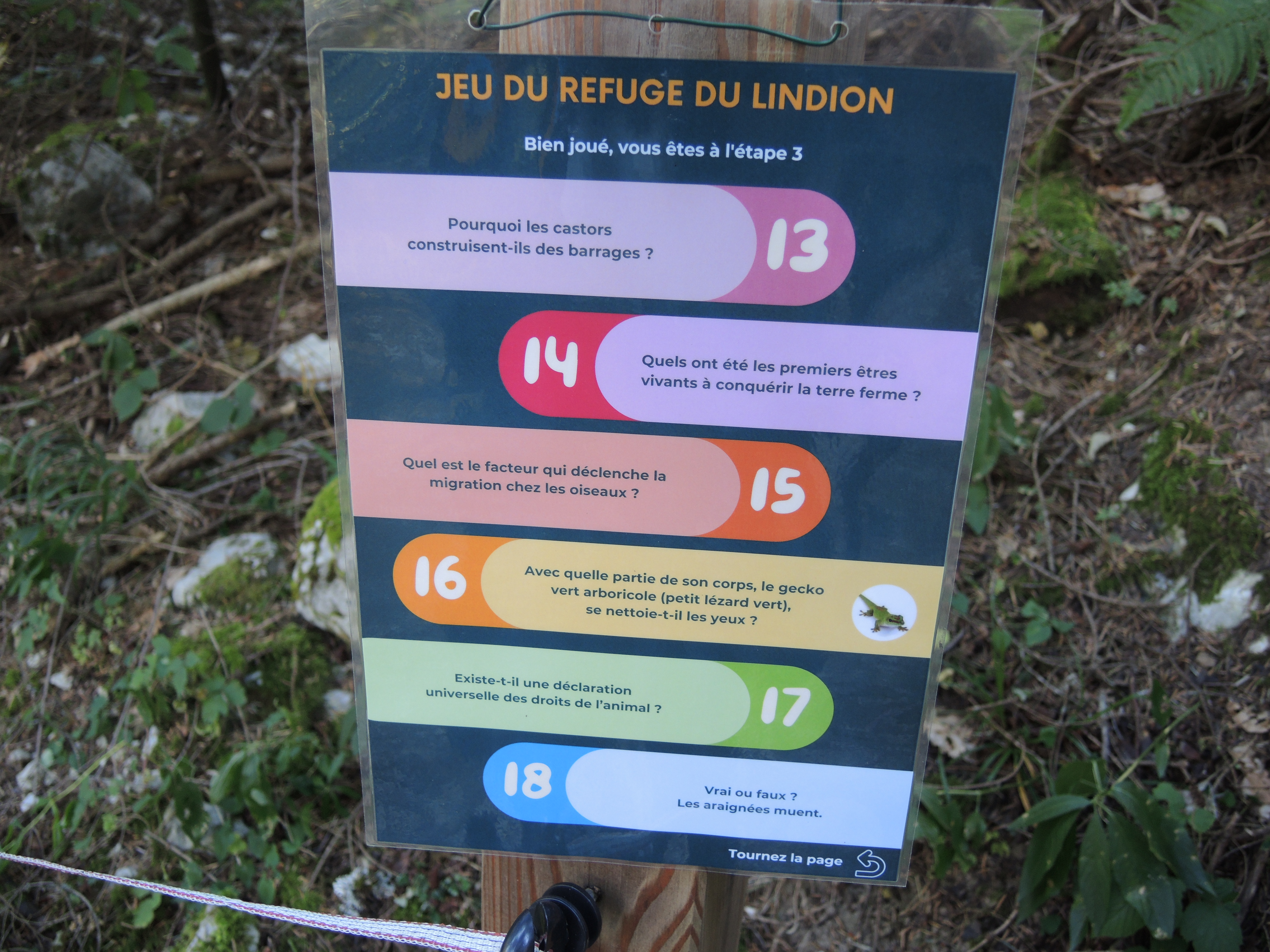 Pour attirer les jeunes clients, le refuge du Lindion a trouvé une astuce : disposer régulièrement sur le chemin des questions pour les champions. Un bon prétexte pour reposer les jambes et stimuler les neurones.