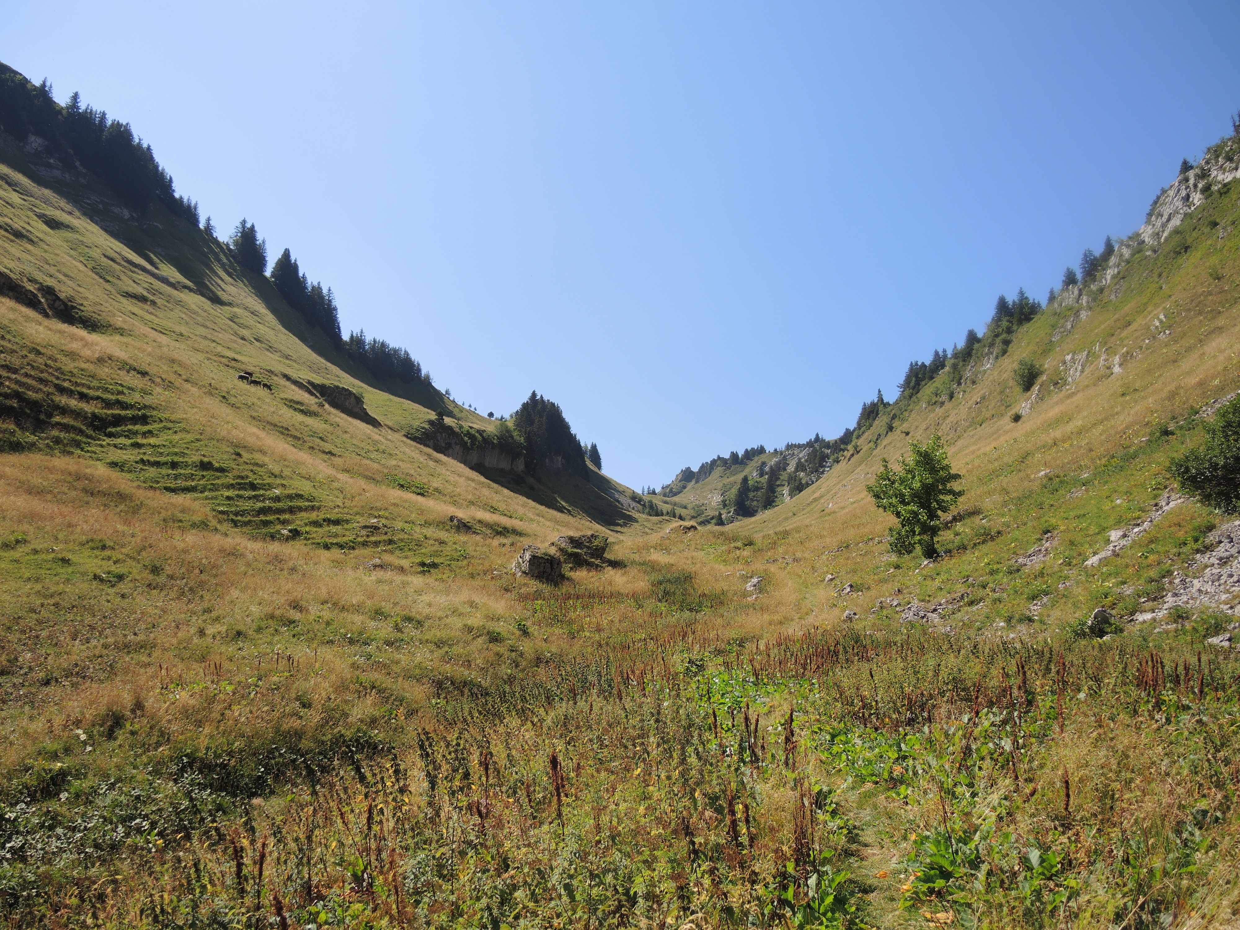 Après les chalets de l’Aulp (qui signifie alpage), je franchis le pas (passage étroit) de l’Aulp et descends vers le col des Nantets.