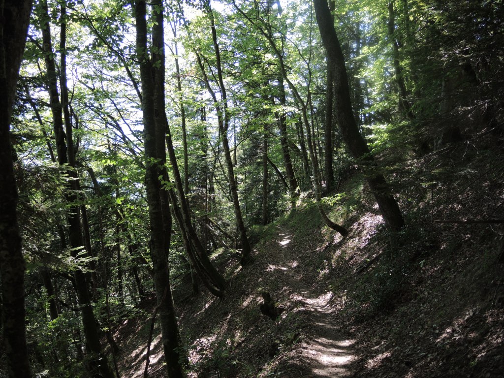 Je ne ferai aucune pause avant Talamarche, juste le temps de prendre ces trois photos et je quitte cette jolie clairière du Lindion pour regagner la forêt. D’ici peu, j’atteindrai la zone des alpages et je brûlerai dans le cagnard. Mais qu’importe après tout, puisque c’est beau.