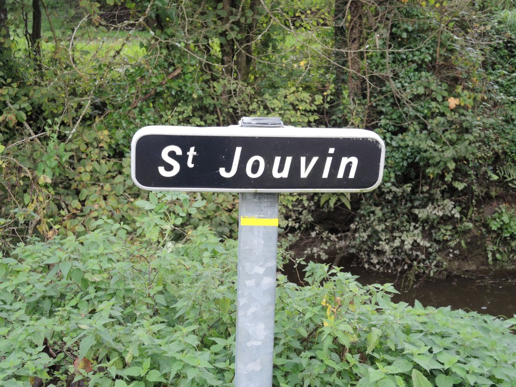 Jouvin et Thomas, mes compagnons d’escapade bocagère, ne se sont pas connus ici-bas. Si Thomas Hélye nous paraît déjà lointain du haut de son XIIIème siècle, Jouvin est son aîné de presque mille ans. Ils ont pourtant arpenté probablement les mêmes haies, les mêmes ruisseaux, les mêmes forêts. Thomas est né vers 1280, Jouvin vers 310. Il semble issu d’une famille aristocratique gauloise représentée au sénat romain. Certaines sources internet présentent Jouvin comme ayant reçu une éducation chrétienne avec ses frères et sœurs, notamment son frère Maximin, évêque de Trèves, et chez qui il aurait rencontré saint Athanase. Mais entre un certain Jouvin né dans le Cotentin et un Jouin ou Jovin ou Jovinus, né dans la région de Poitiers, les confusions sont probables entre ces acteurs d’un lointain IVème siècle. Je ne trancherai pas ces questions historiques, mais il me plaît de mettre mes pas dans ceux de ce saint vénéré ici. Laissons la piété populaire, encore très vivante, s’exprimer dans les méandres des légendes historiques et des histoires légendaires. L’on vient encore aujourd’hui s’imprégner de l’eau de la fontaine de Saint Jouvin pour ses vertus sur les maladies de peau, notamment l’eczéma. Saint Jouvin fait partie de ces saints guérisseurs, souvent appréciés des personnes dont la foi est restée simple et humble. Et l’église accompagne fidèlement ces dévotions, qui nous viennent d’un christianisme antique.