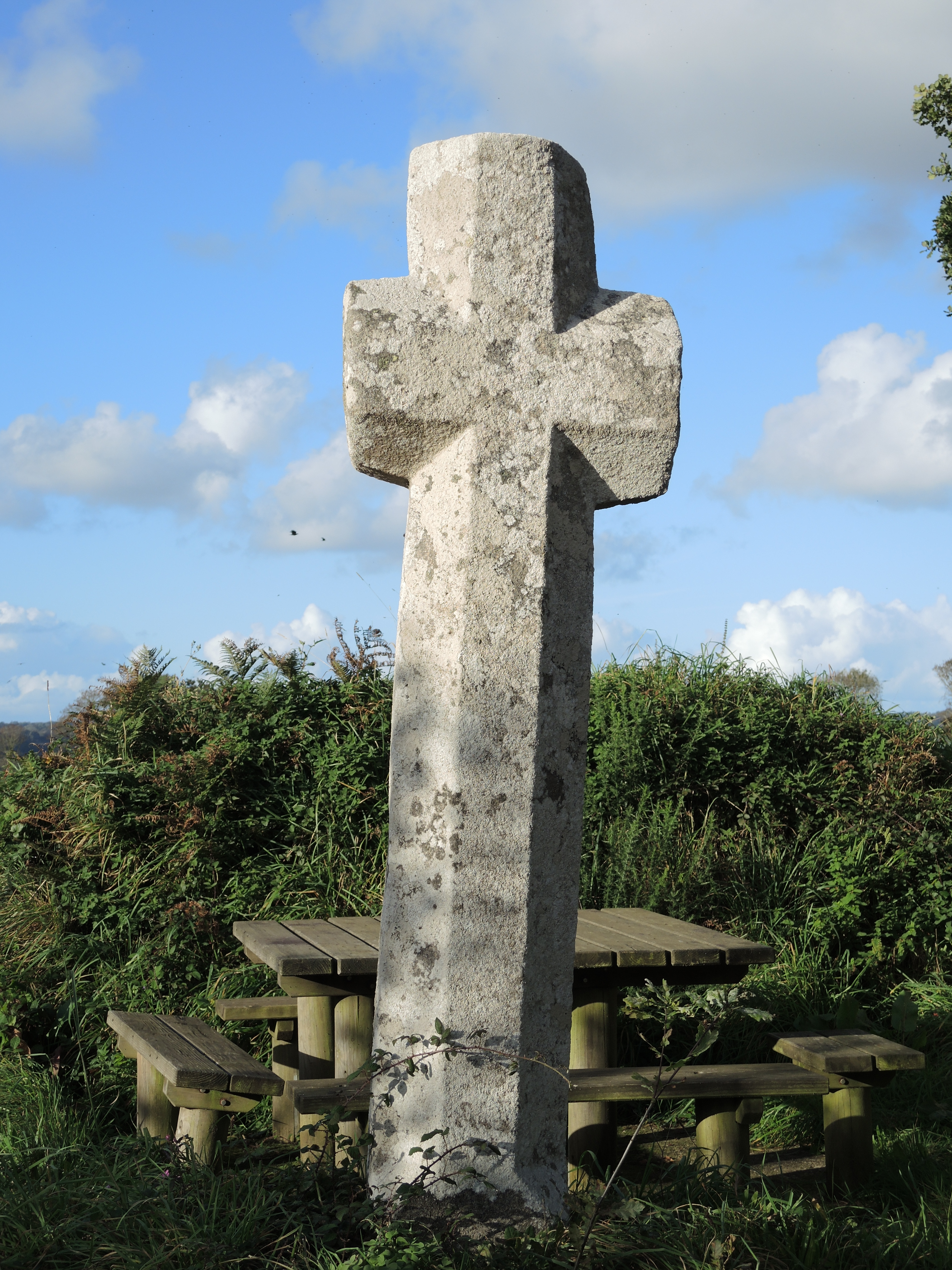 Je commence par me tromper de chemin et me rallonge ainsi d’autant le parcours. Qu’importe, les forêts celtiques, les calvaires antiques, la robe blanche des vaches et la toponymie étrange valent toujours le détour.