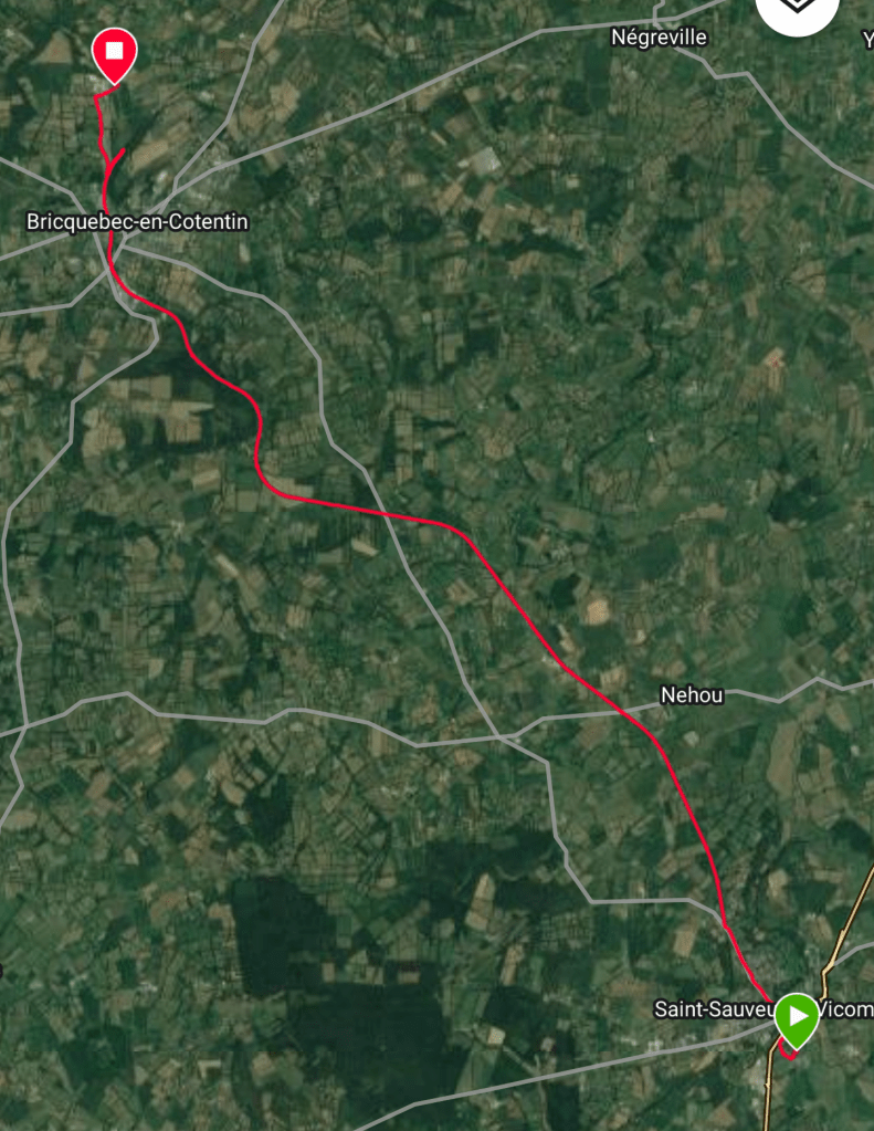 Je remonte de l’autre côté de la Douve et quitte la route définitivement : une piste cyclable conduit tout droit à Bricquebec, sur une ancienne voix ferré, qui servit de 1884 à 1996.