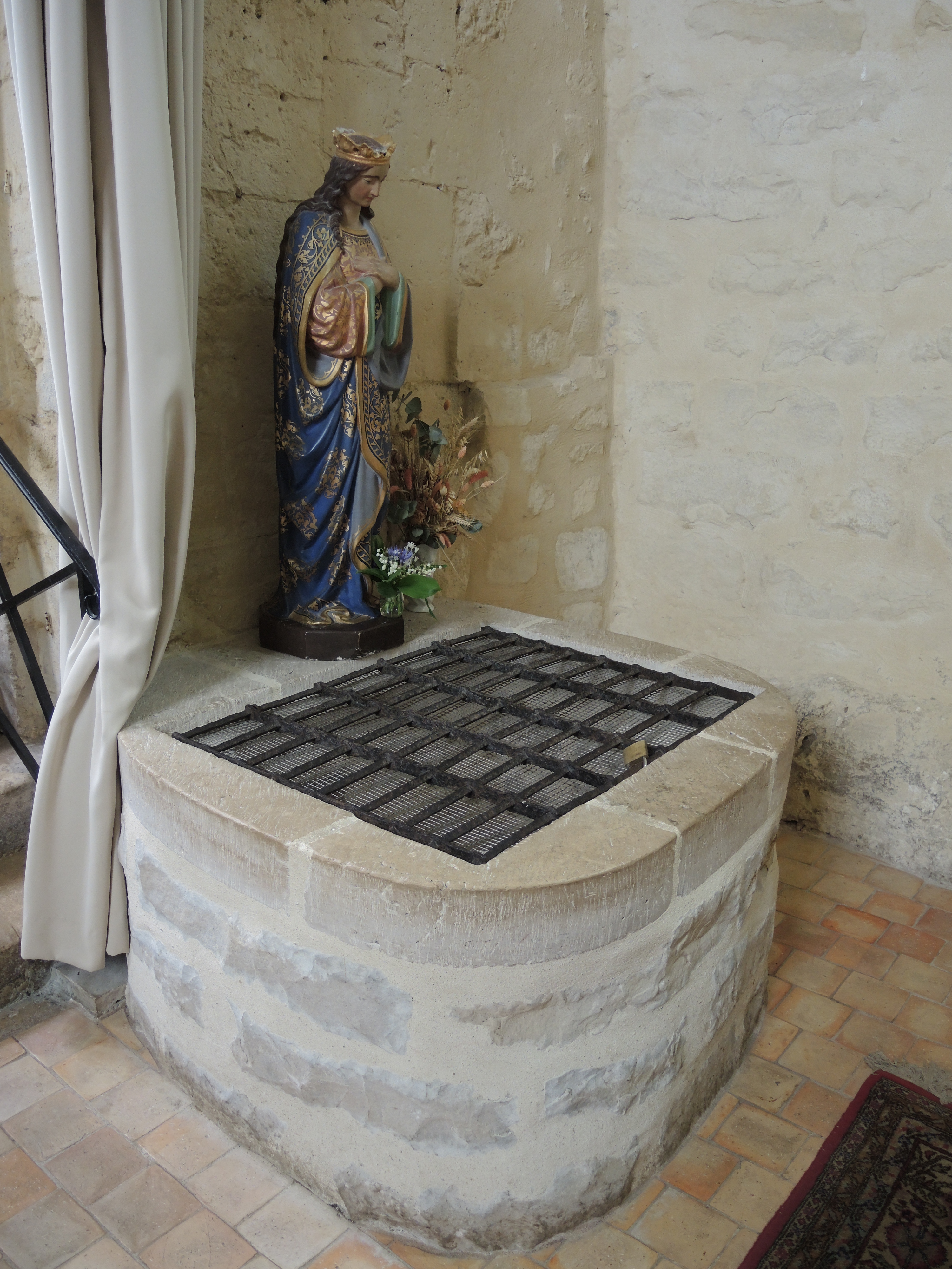 En bas de l’escalier à gauche se trouve un puits, découvert lors de fouilles en 1936. Comme à Longpont ou à Chartres, il semble que la présence d’une source dans les édifices montre qu’il y eut d’abord un culte celtique ultérieurement christianisé.