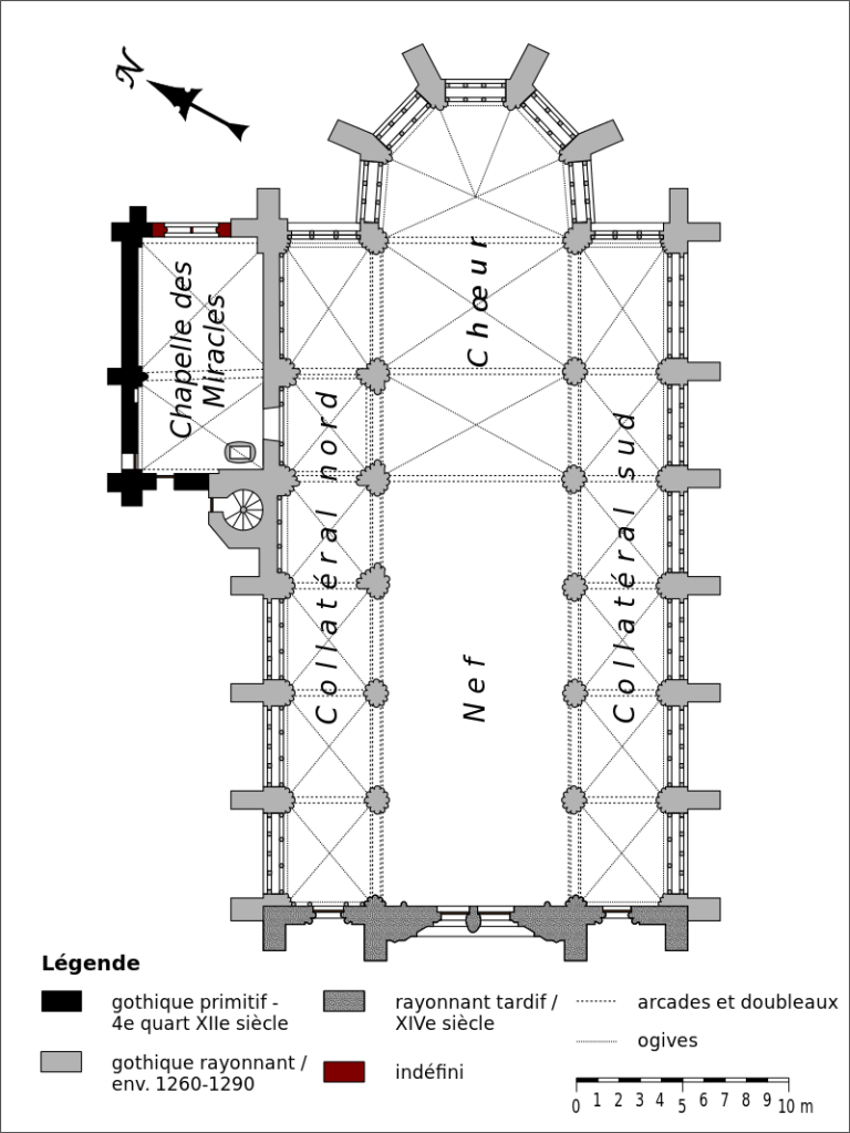 Trois passages champenois intérieurs et un extérieur, réservés dans l’épaisseur des contreforts, permettent l’entretien des vitraux et de la pierre :