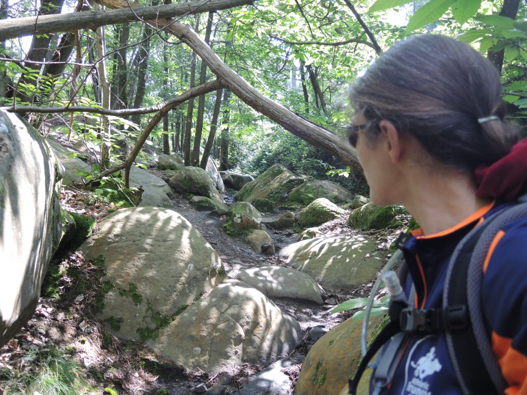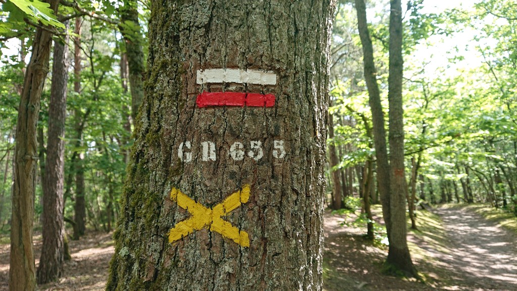Le bois de Baville surplombe la Renarde et, par le GR 655 Est, je gagne Boissy-sous-Saint-Yon. Ce GR 655 Est est une branche orientale du chemin de Saint-Jacques passant par Tours : c’est la via Turonensis. Allant vers le Nord, je l’emprunte à l’envers, via les rochers de Charville :