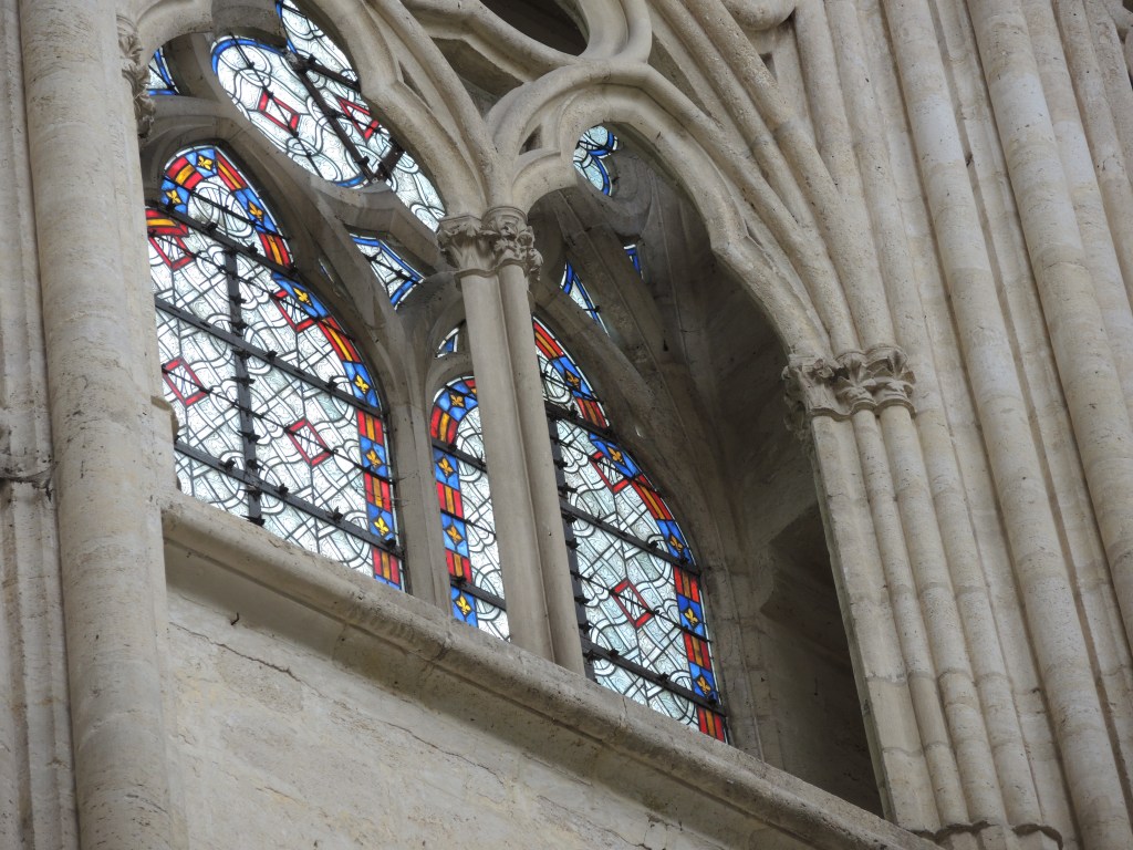 Ce vitrail date également du XIIIème siècle, ainsi que celui – tout aussi exceptionnel – de la chapelle « des grisailles » qui désigne ces vitraux non historiés aux motifs géométriques gris :