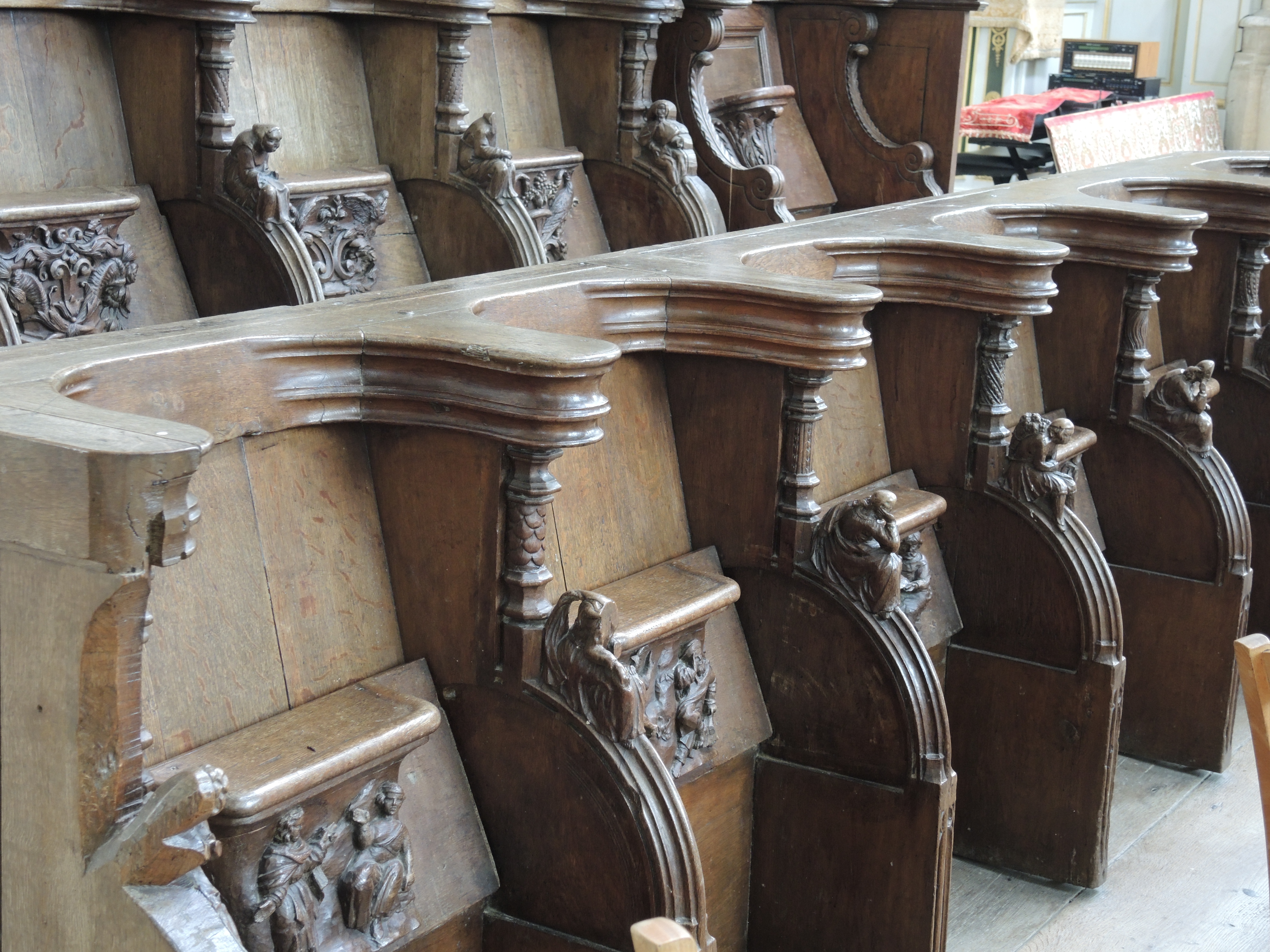 Enfin – et pour finir sur ces quelques éléments architecturaux et historiques de cet église hors norme – un petit détail des stalles de bois laisse le pèlerin et le touriste avec un sourire en coin : un petit moine est sculpté, somnolant nonchalamment pendant l’office divin… L’endormissement et le ramollissement dans l’église ne datent donc pas d’aujourd’hui…