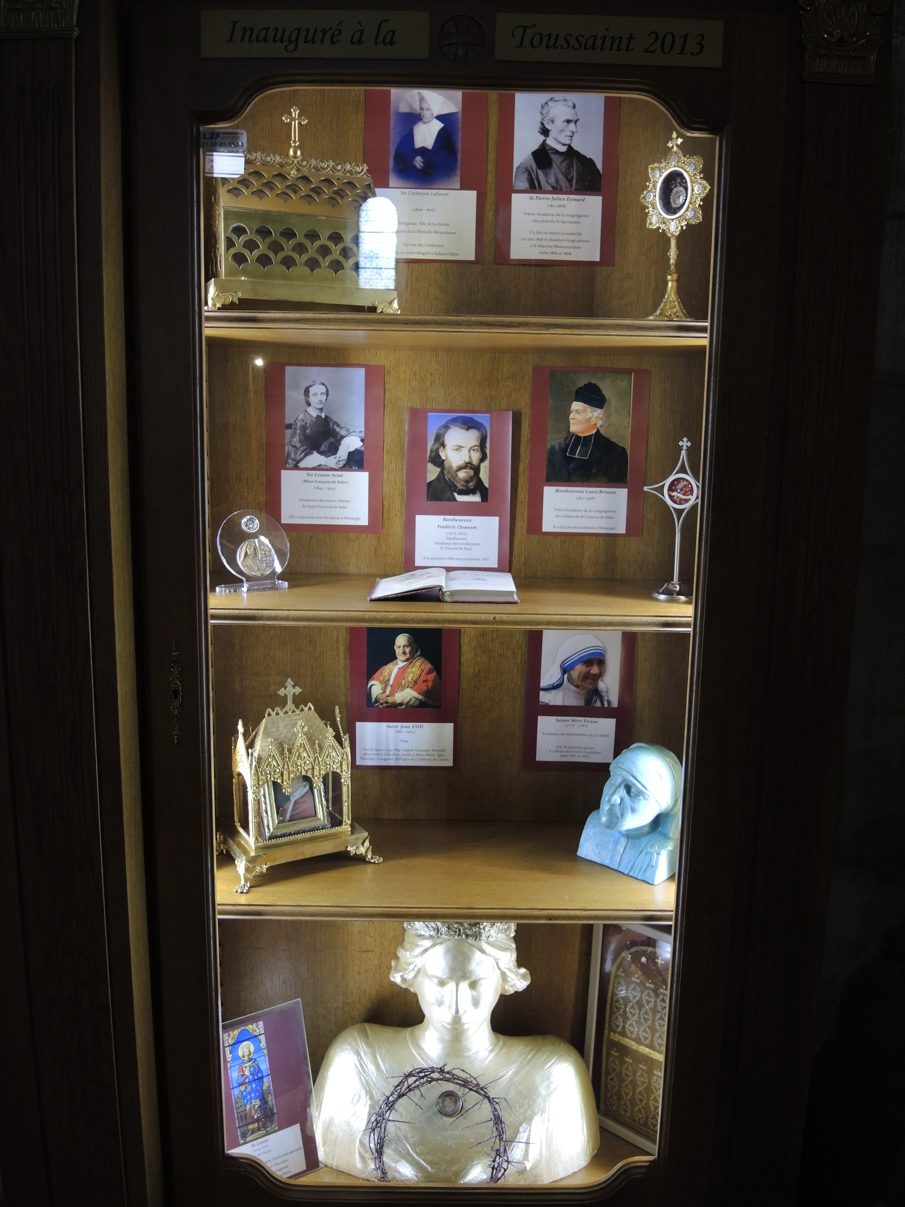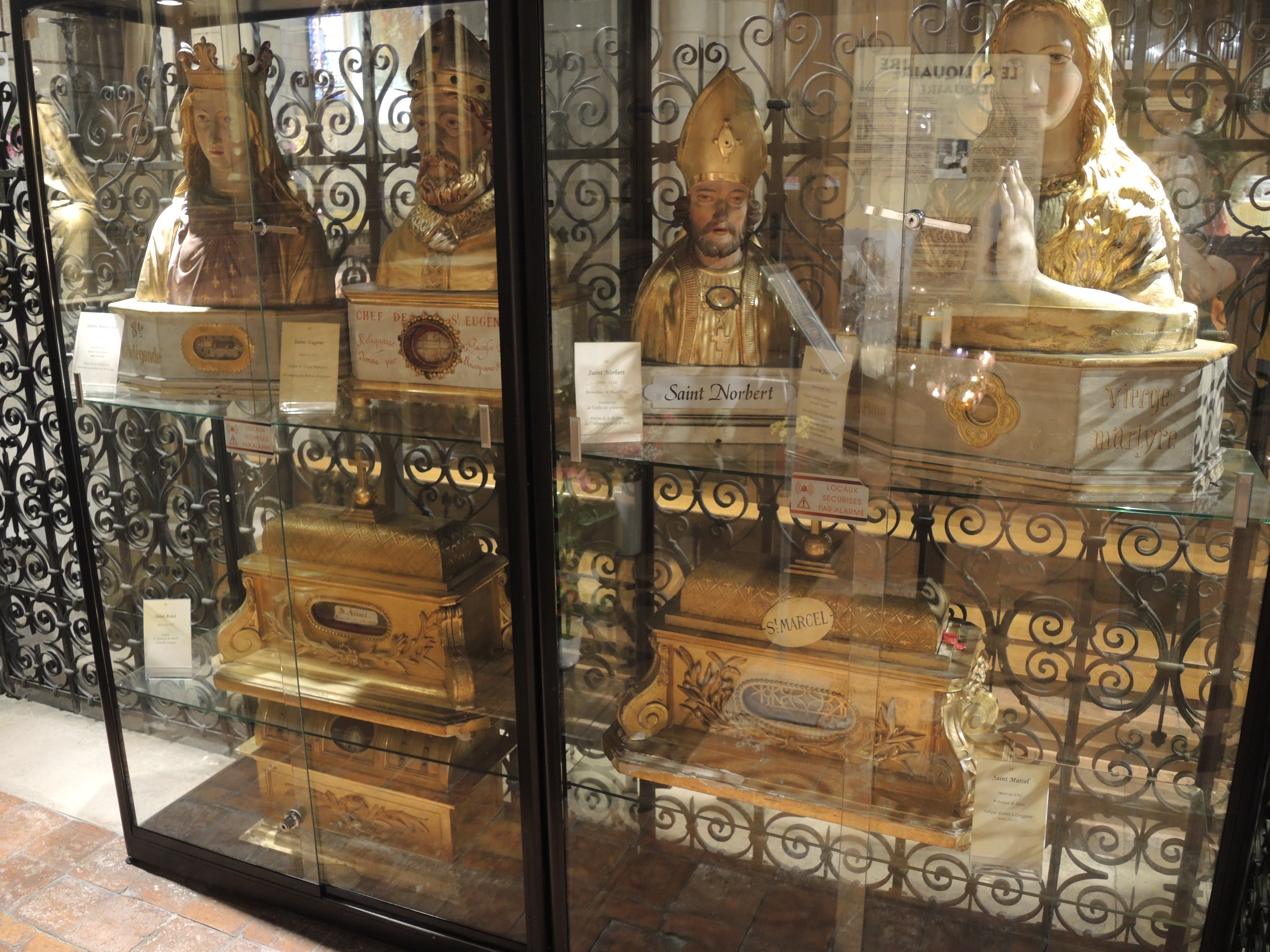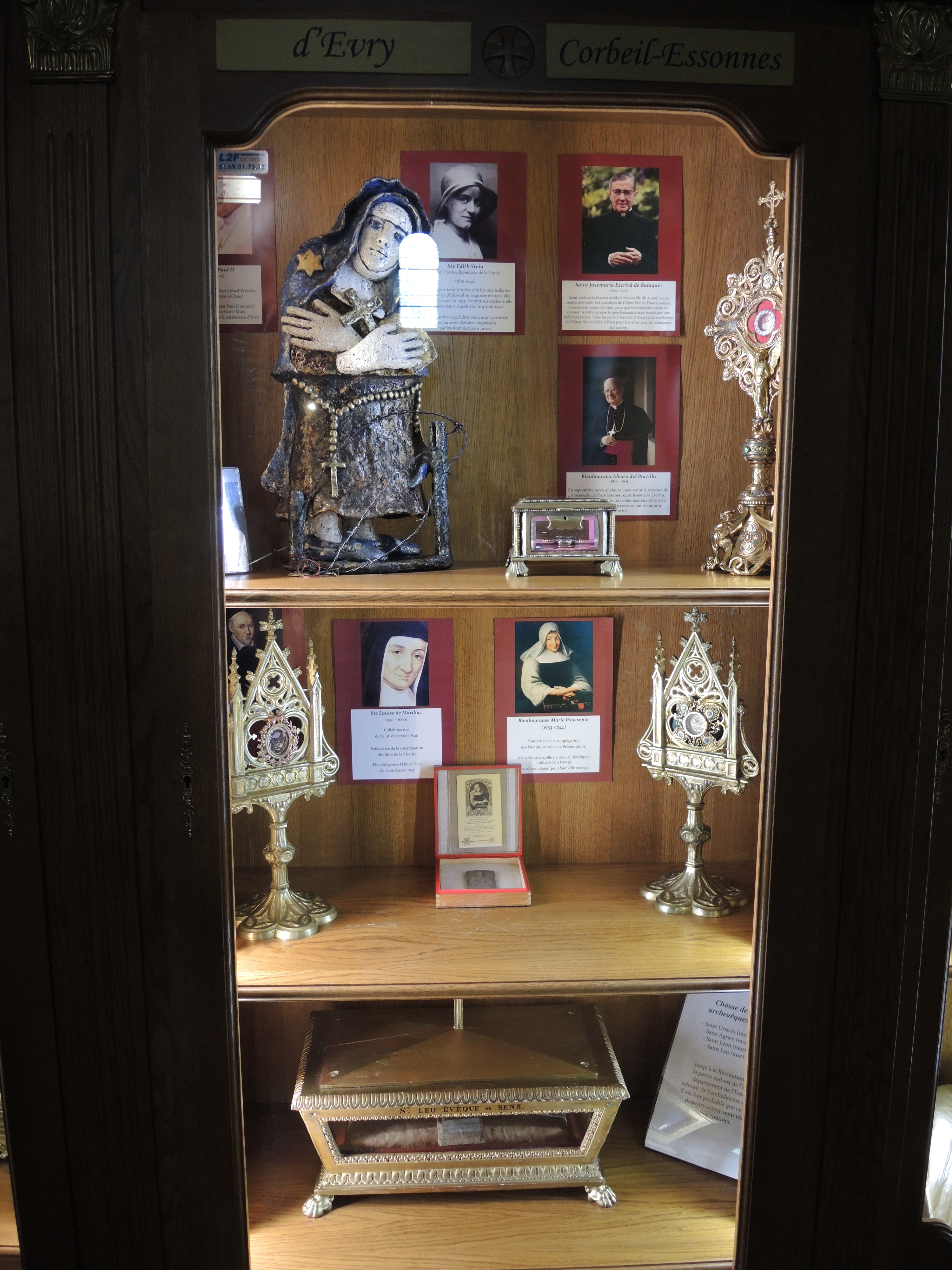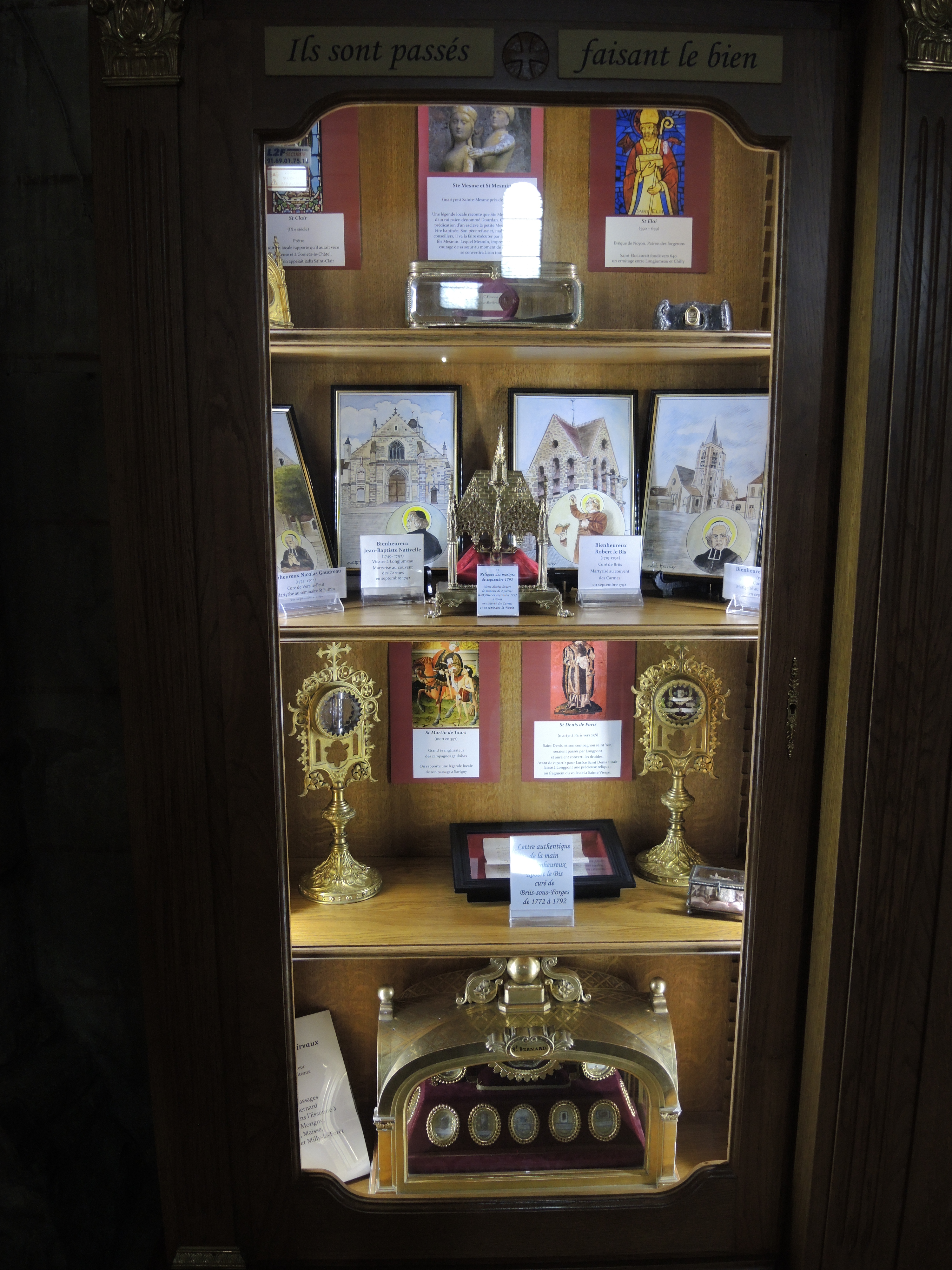 Une des grandes particularités de Longpont est son très imposant reliquaire. Derrière ces vitrines, se trouvent des dizaines de reliques de saints de toute époque et de tous charisme.